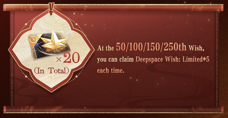 • 50th 100th 150th and 250th wish Deepspace Wish Limited times five